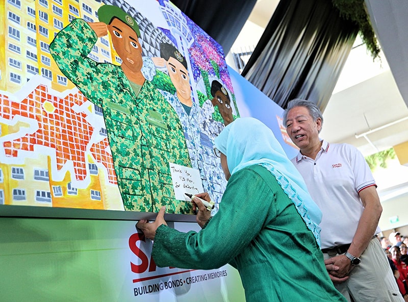 President Halimah Yacob pens her personal thank you message to NSmen on the art piece. Image by MCI.